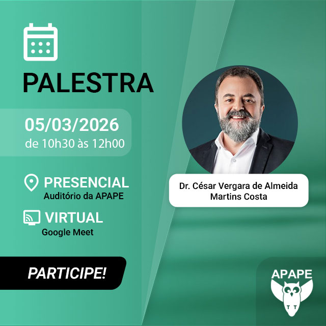 CONVITE PARA A PALESTRA DO Dr. CESAR VERGARA DE ALMEIDA MARTINS COSTA O Assessor Jurídico da FENASPE/APAPE, Dr. César Vergara de Almeida Martins Costa,…